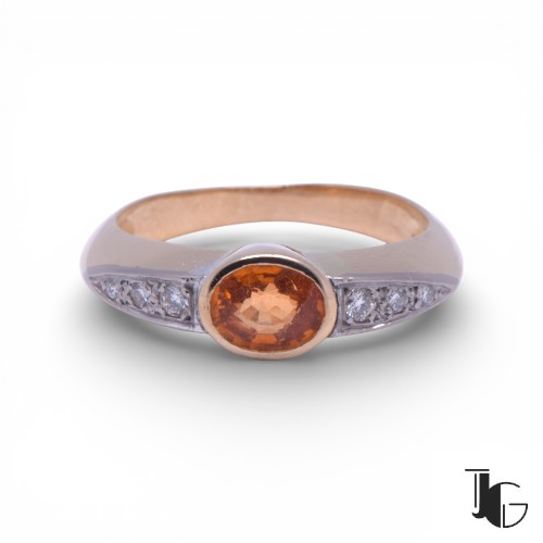 Cette bague avec grenat spessartite et diamants a été contrôlée et restaurée dans nos ateliers avant sa mise en vente.