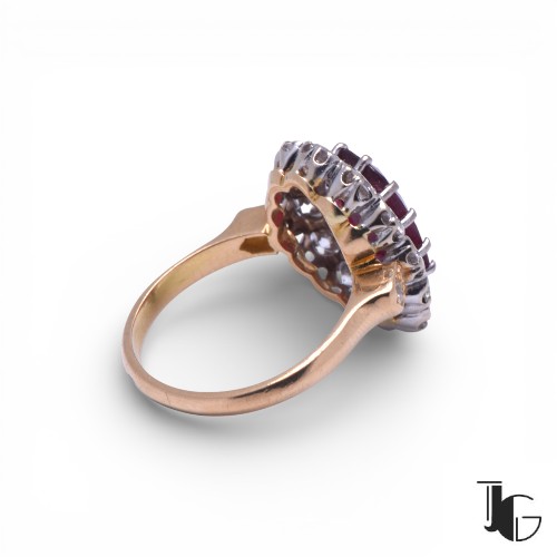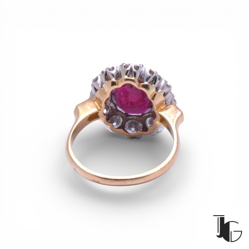 Cette bague pompadour avec rubis et diamants a été contrôlée et restaurée dans nos ateliers avant sa mise en vente.