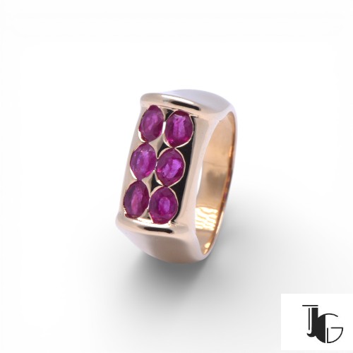 Or jaune 750/1000, 6 rubis ovales pour environ 1.50 carat au total sertis masse, poids total du bijou 6 grammes.