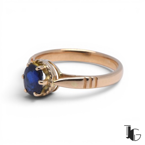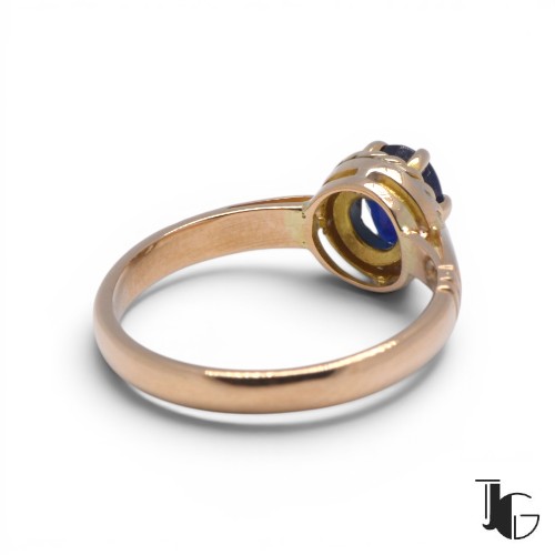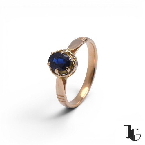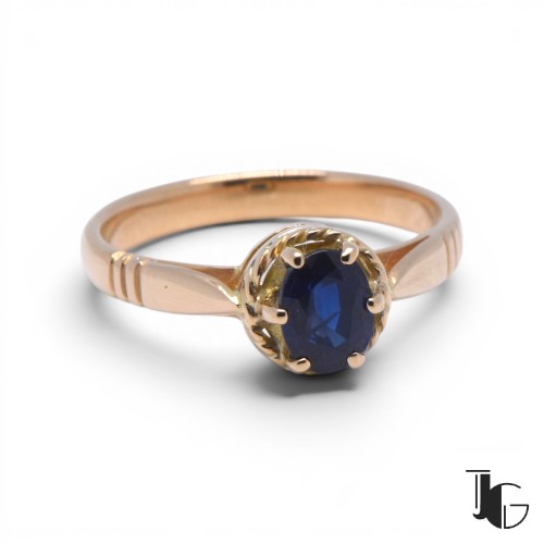 Or jaune 750/1000, saphir ovale 6.5 x 4.5 mm serti 6 griffes, poids total du bijou 3.55 grammes.