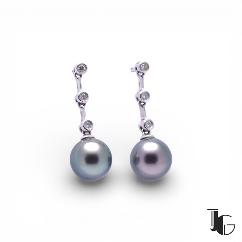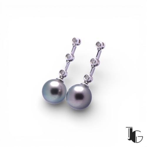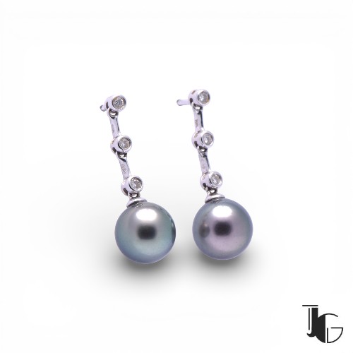 Ces boucles d’oreilles avec perles et diamants présentent une ligne sobre et équilibrée. Elles associent la douceur des perles de Tahiti à l’éclat maîtrisé des diamants, dans une composition lisible et bien proportionnée.