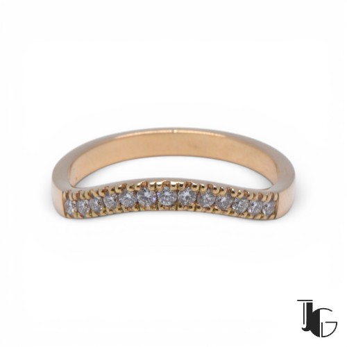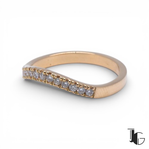La demi alliance vague diamants est une bague délicate pensée pour accompagner naturellement une bague de fiançailles. Sa ligne légèrement ondulée épouse parfaitement la forme d’un solitaire ou d’une bague centrale, créant un ensemble harmonieux au doigt.