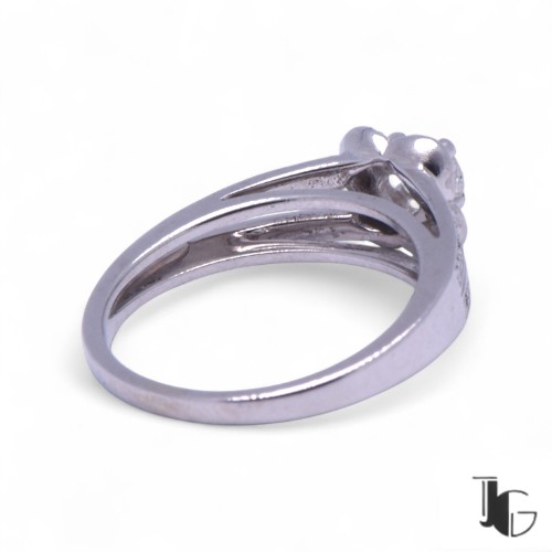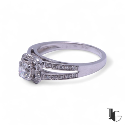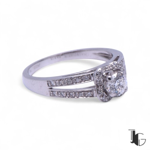 Or blanc 750/1000, diamant central serti griffes, modèle Chance of Love n°3 signé Mauboussin, poids total du bijou selon modèle.Référence : P676