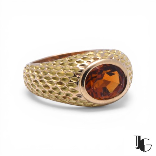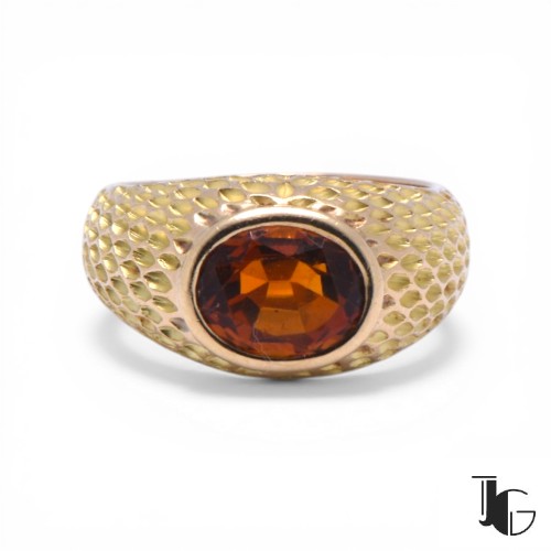 Or jaune 750/1000, citrine Madère ovale sertie clos (9×7 mm), poids total du bijou 9.89 grammes.Référence : R395